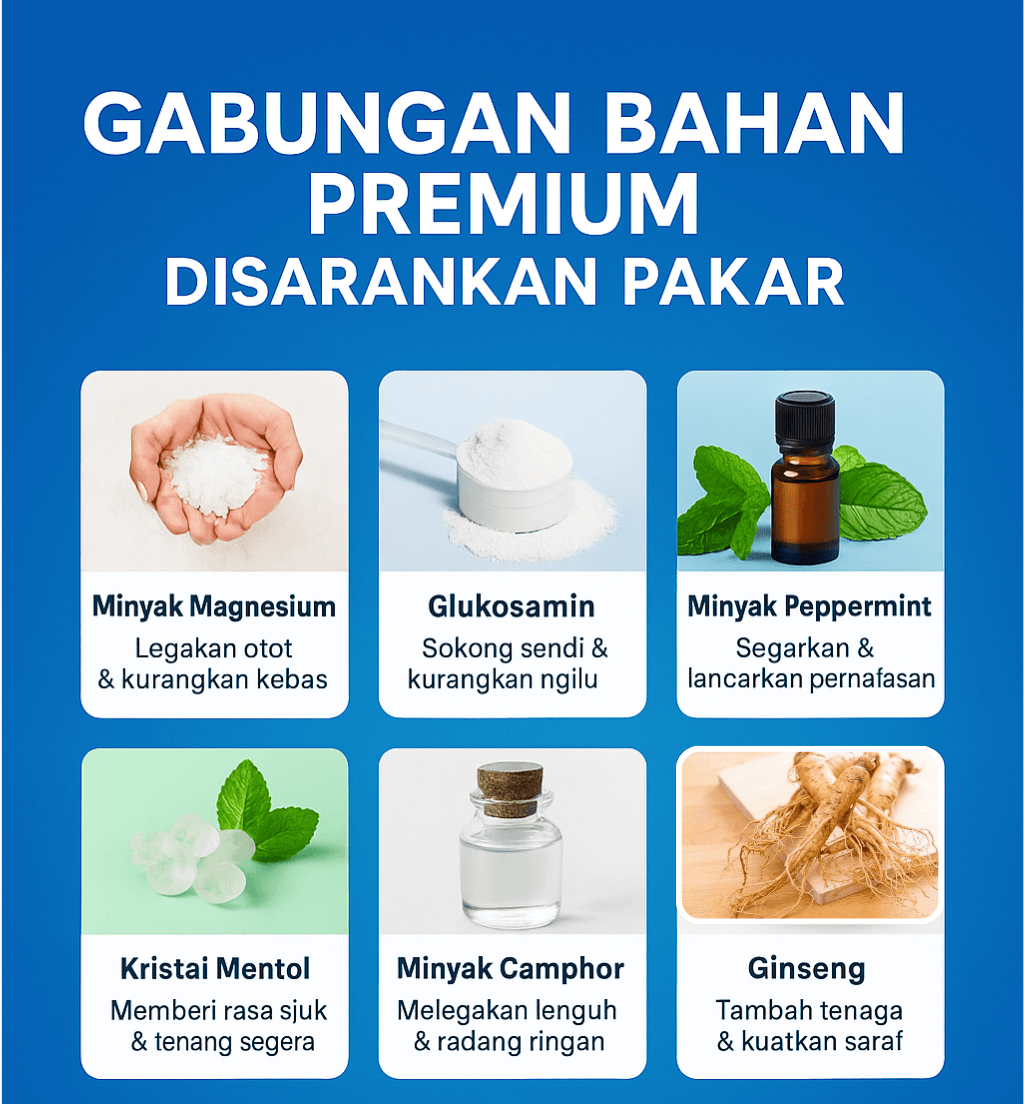 Kebanyakan pengguna rasa lega dalam 3–5 minit selepas spray. Sensasi sejuk membantu kurangkan cramp, kebas dan lenguh dengan cepat.