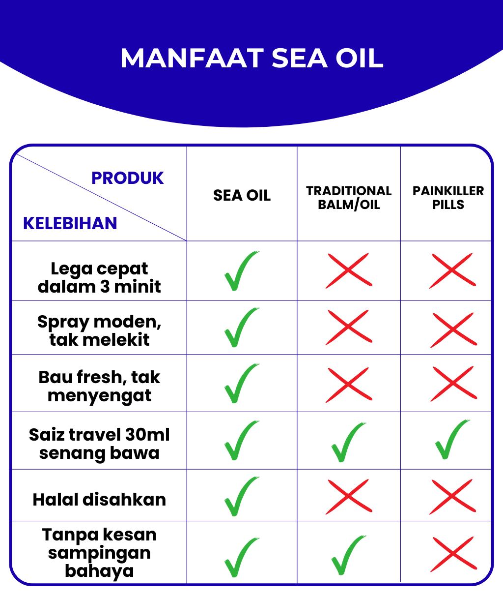 - Tidak. SEA OIL beri sensasi sejuk & nyaman (cooling relief) – lebih selesa berbanding minyak panas atau balm lama.