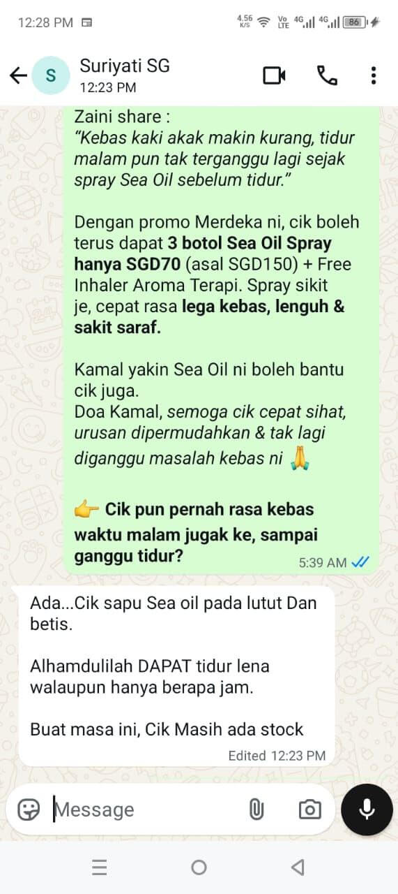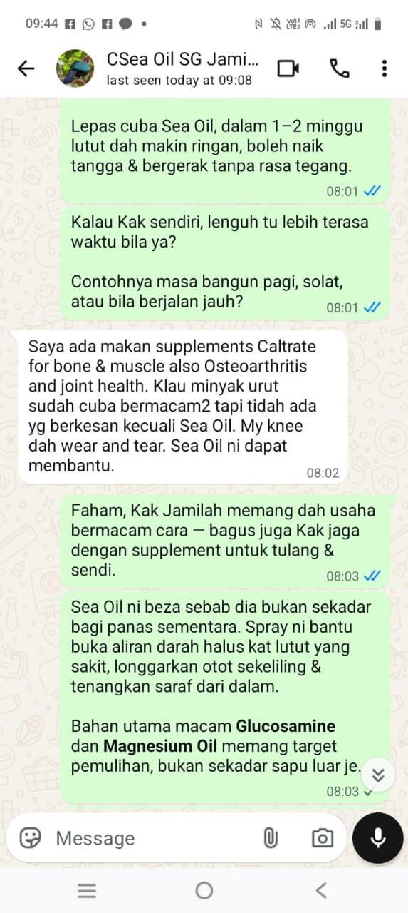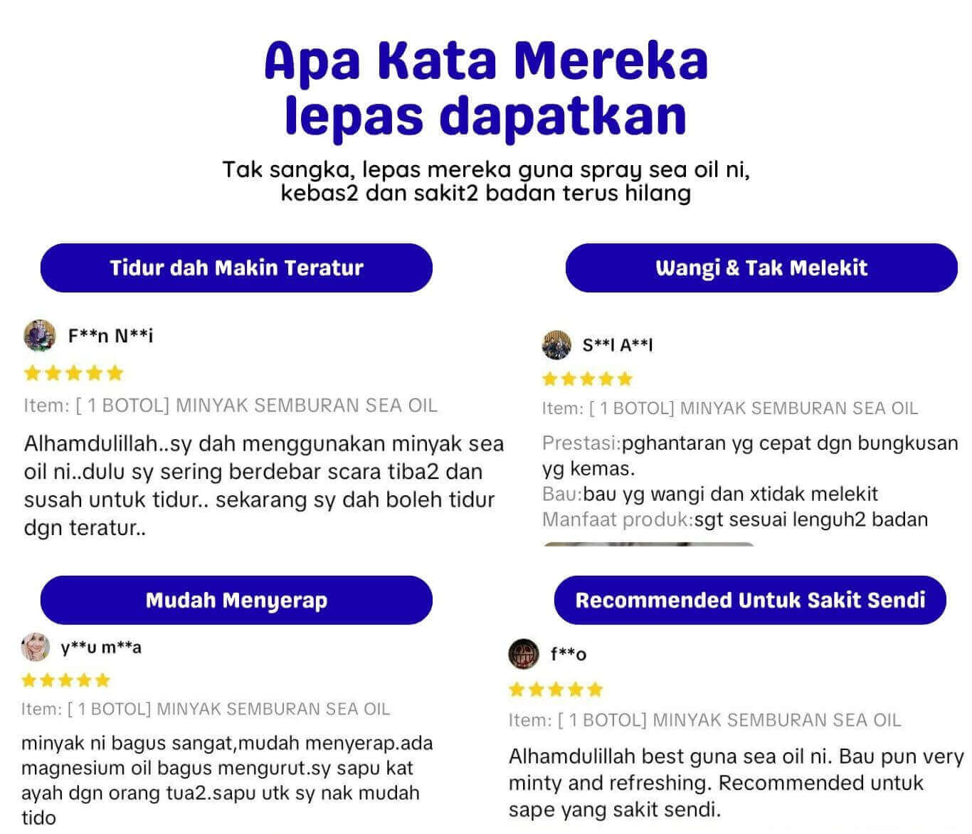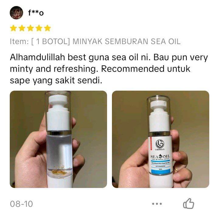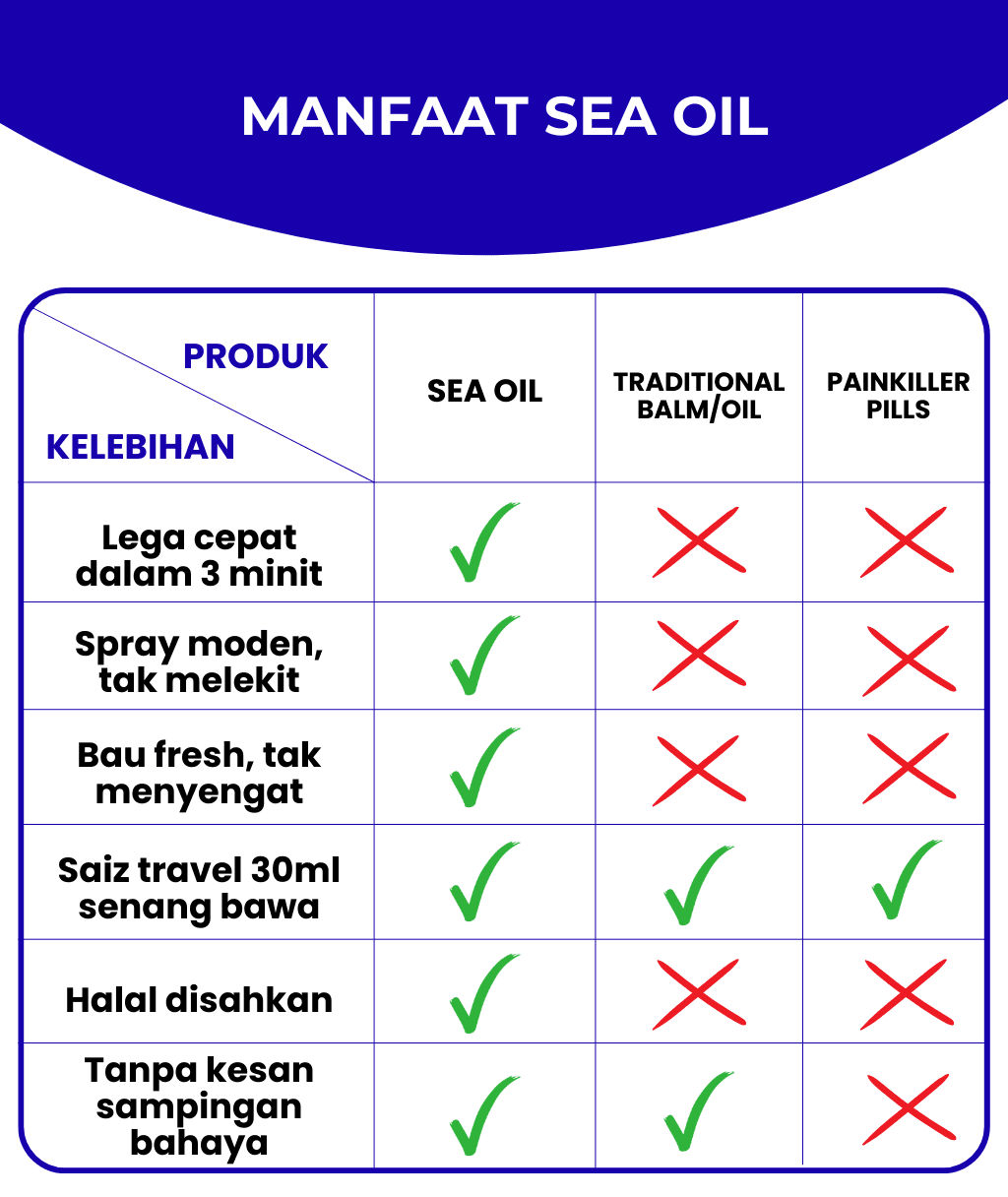 - Ya, SEA OIL diformulasi dari mineral Laut Mati & herba semula jadi seperti camphor, menthol, peppermint, magnesium oil & glucosamine.